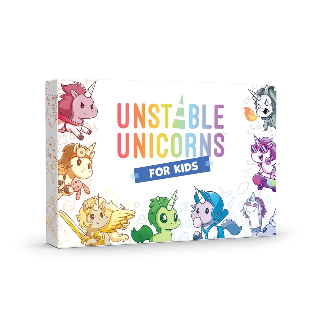 Introduce younger players to a magical world of Unicorns and strategy games with Unstable Unicorns for Kids! Our team has designed all-new artwork, cards, and characters to delight our littlest gamers while remaining fun and engaging for parents.