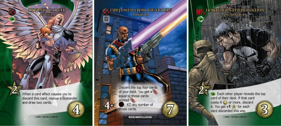 Legendary: Dark CityΒ features 350 all-new cards, including cards for seventeen new Heroes (including X-Force, X-Men, and the Marvel Knights), six new Villain Groups, two new Henchmen Groups, eight new Schemes, and five amped-up new Masterminds more powerful than ever before. Each Hero features four different all-new artworks. A new “Unique Bystander” mechanic gives special rewards to players who rescue them.