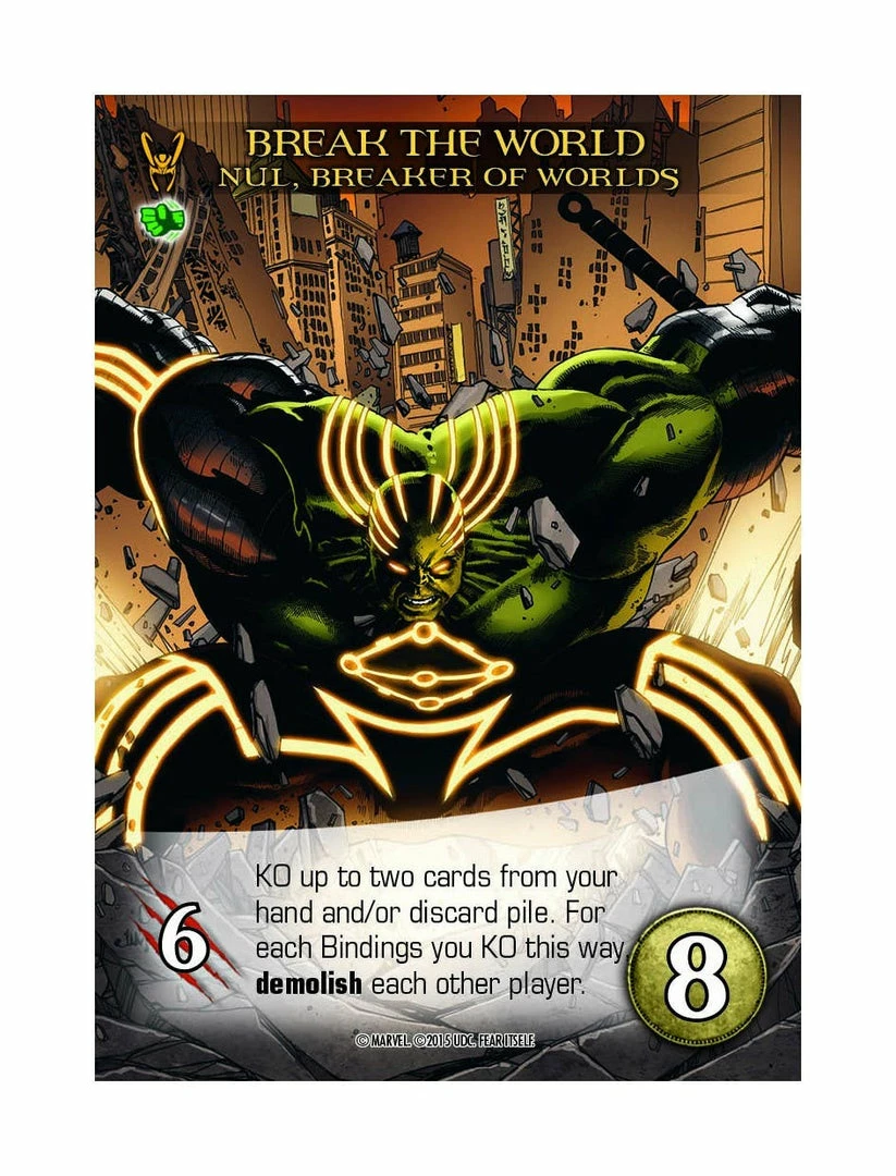 With theΒ Legendary Villains: Fear ItselfΒ expansion forΒ LegendaryΒ andΒ Legendary: Villains, you can play through the “Fear Itself” storyline from Marvel Comics. This expansion consists of six new allies from The Worthy: Kuurth, Nul, Skirn, Nerkkod, Greithoth and Skadi; one new adversary group; one new commander; and three new plots.