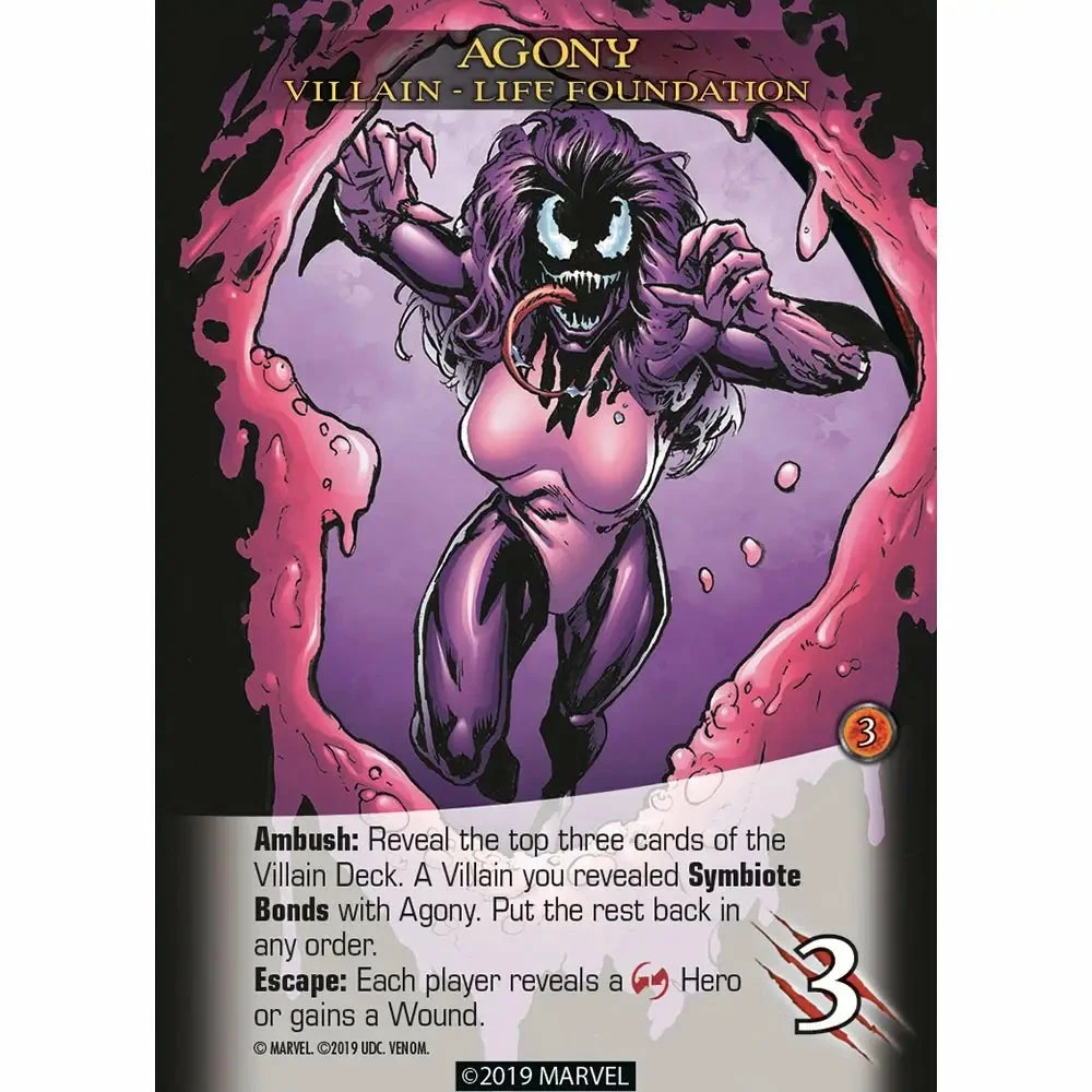 TheΒ Legendary: A Marvel Deck Building Game β VenomΒ expansion features five new heroes, two new villain groups, two new masterminds, and four new schemes. The return of fan-favorite keywords like Excessive Violence, as well as some all new game mechanisms and new twists on some old ones! Watch out when a Symbiote villain ambushes the city as they might bond with another villain to create a powerful adversary!