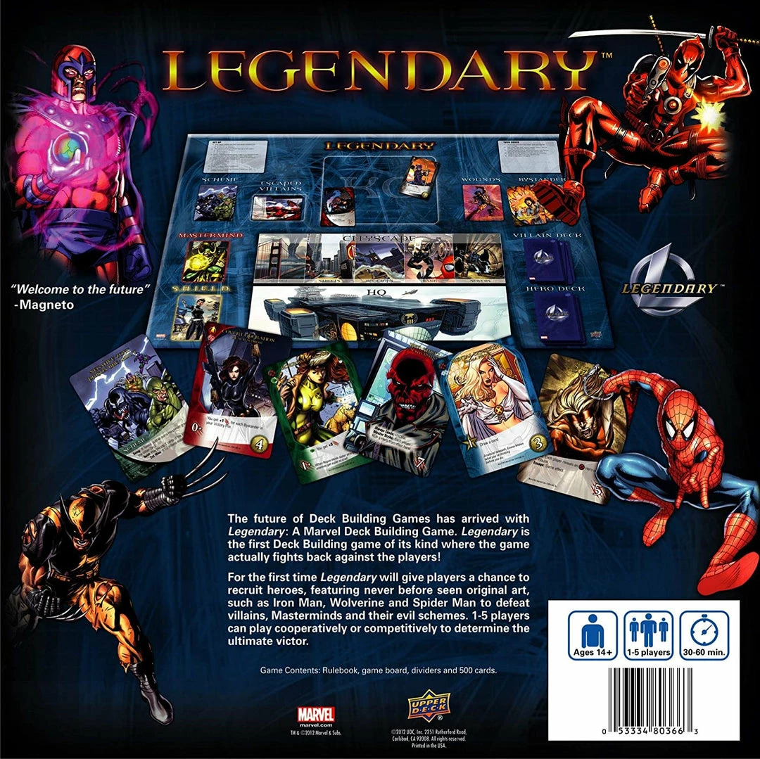 Legendary: A Marvel Deck Building Game is set in the Marvel Comics universe. To set up the game, players choose a mastermind villain (Magneto, Loki, Dr. Doom, etc.), stack that particular villain’s attack cards underneath it, then modify the villain deck as needed based on that villain’s particular scheme. Players then choose a number of hero decks β Spider-Man, Hulk, Cyclops, Wolverine, etc. β and shuffle them together; since players use only a handful of hero decks out of the fifteen included, the hero deck can vary widely in terms of what’s available.