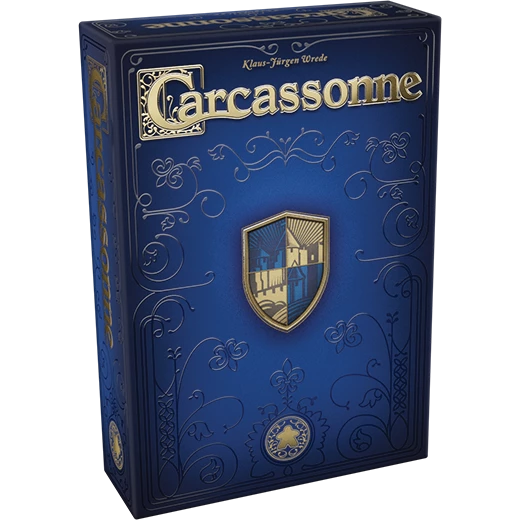Carcassonne: 20th Anniversary EditionΒ is a special edition ofΒ CarcassonneΒ to celebrate the 20th anniversary of its Spiel des Jahres win in 2001. This edition includes the tiles from theΒ CarcassonneΒ base game, “The River” mini-expansion (with five new river tiles), “The Abbot” mini-expansion, and a new 15-tile “anniversary” mini-expansion. All tiles are adorned with UV-print, with many detailed easter eggs being hidden in the art. Costume stickers are included in case you wish to “dress” your meeples.
