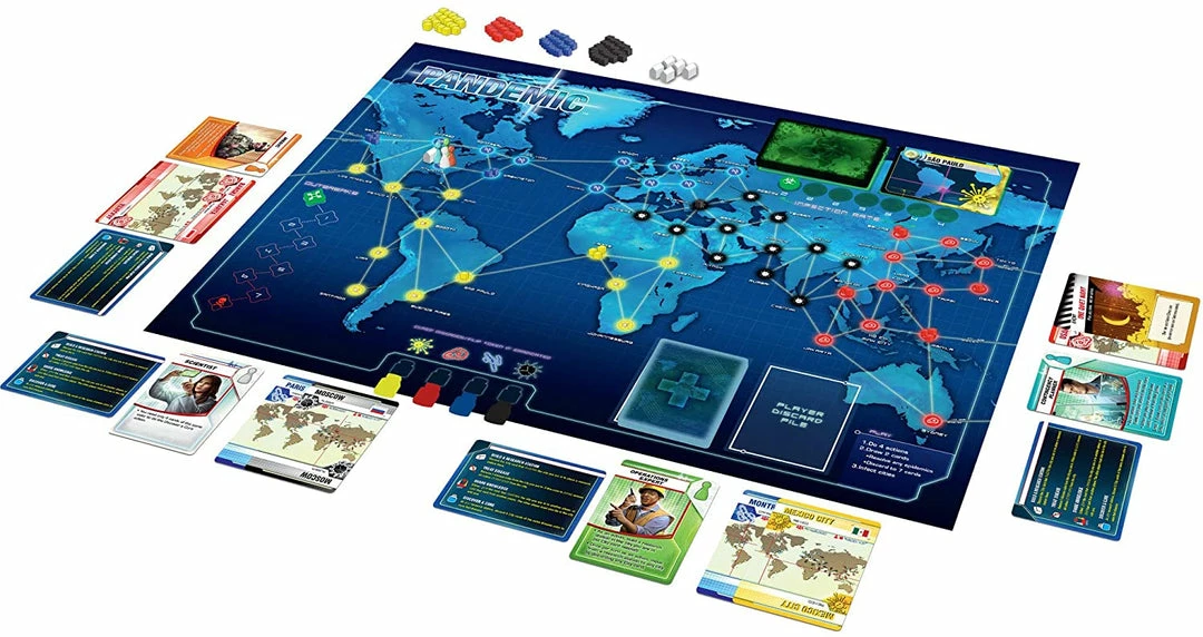 As skilled members of a disease-Fighting team, you must keep four deadly diseases at bay while discovering their cures. You and your teammates will travel across the globe, treating infections while finding resources for cures. The clock is ticking as outbreaks and epidemics fuel the spreading plagues, and you must work as a team to succeed. Can you find all four cures in time? The fate of humanity is in your hands!